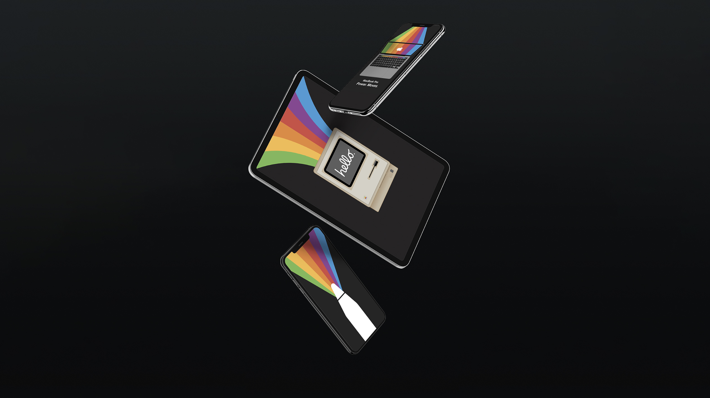 During my time at Apple, I had the wonderful opportunity to create artwork, solely using shapes in Keynote. It’s incredible what you can do in such a simple, yet powerful presentation specific program. I have a love for retro inspired artwork and thought I might combine some of Keynotes incredible tools and simple functions to create great pieces resembling both old and new devices from Apple.