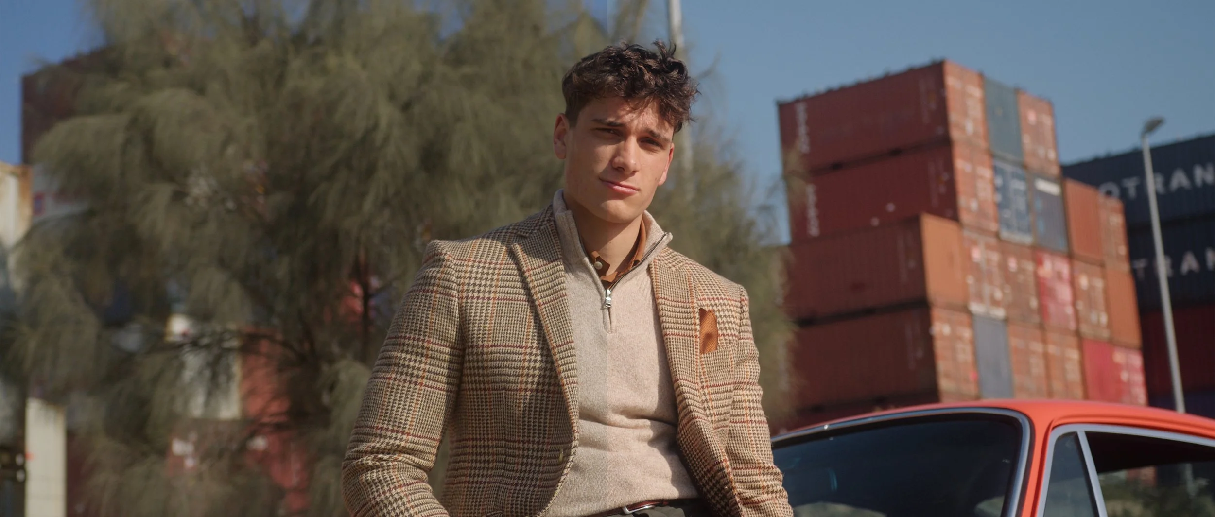 Once on location, and quickly setting up our respective camera gear whilst waiting for the wonderful 911 E in orange to arrive. We quickly scouted where we wanted to place the car. It became quickly obvious based on sun positioning, that we wanted our subject to be mostly side-lit, or backlit from the sun. Plus, we wanted to great backdrop, so we placed the car in front of large stack of shipping containers, resembling those scenes mentioned from Heat.