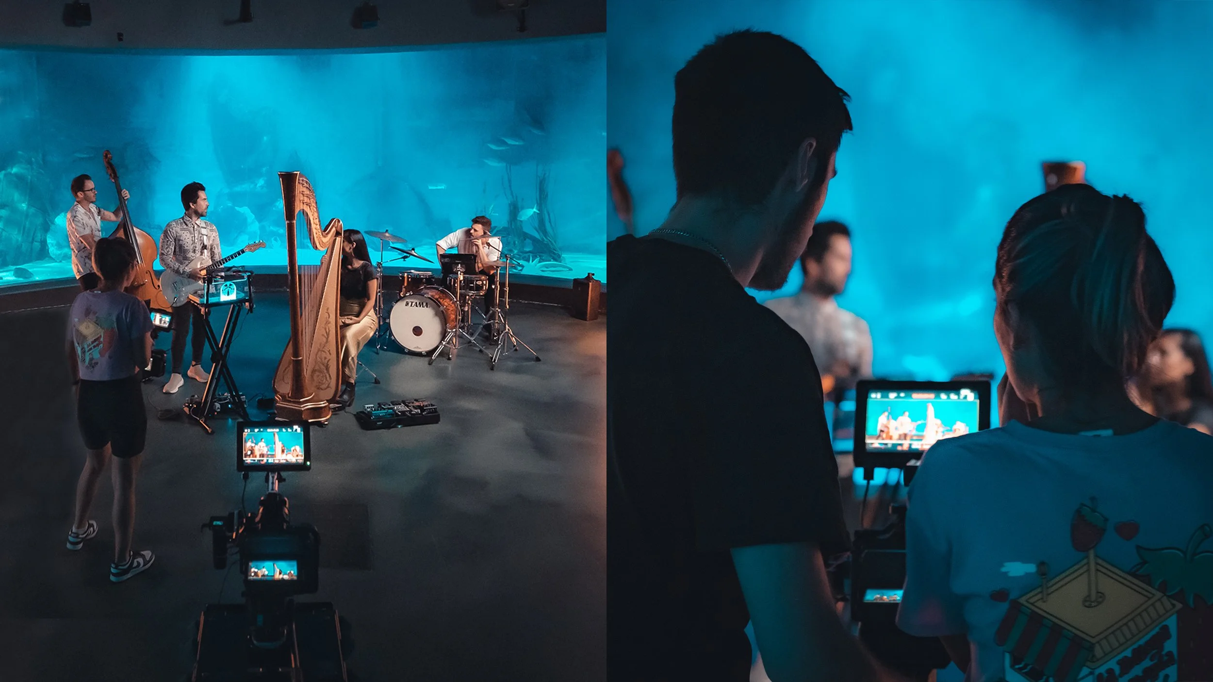 Let me share the exciting story of a unique gig in my cinematography career—a music video shoot set in the captivating Melbourne Aquarium, featuring the band 'Perolas.' This unforgettable experience was the brainchild of Liana, the band's experimental harpist and vocalist, known for her unique talents.