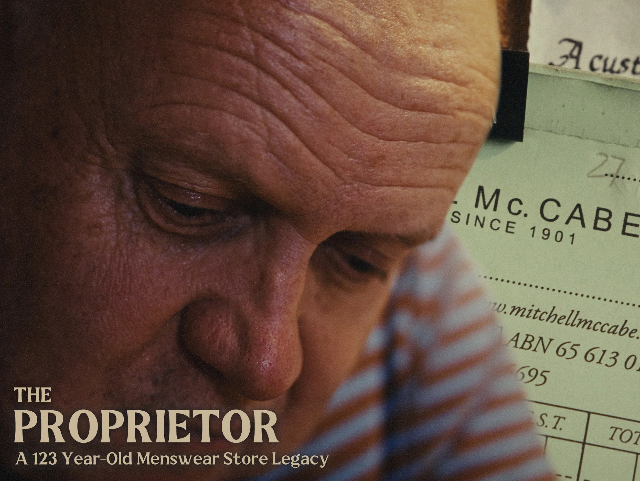 Still from The Proprietor — A Short Documentary about the 123 year-old Menswear store Mitchell McCabe South Melbourne, December 2024.