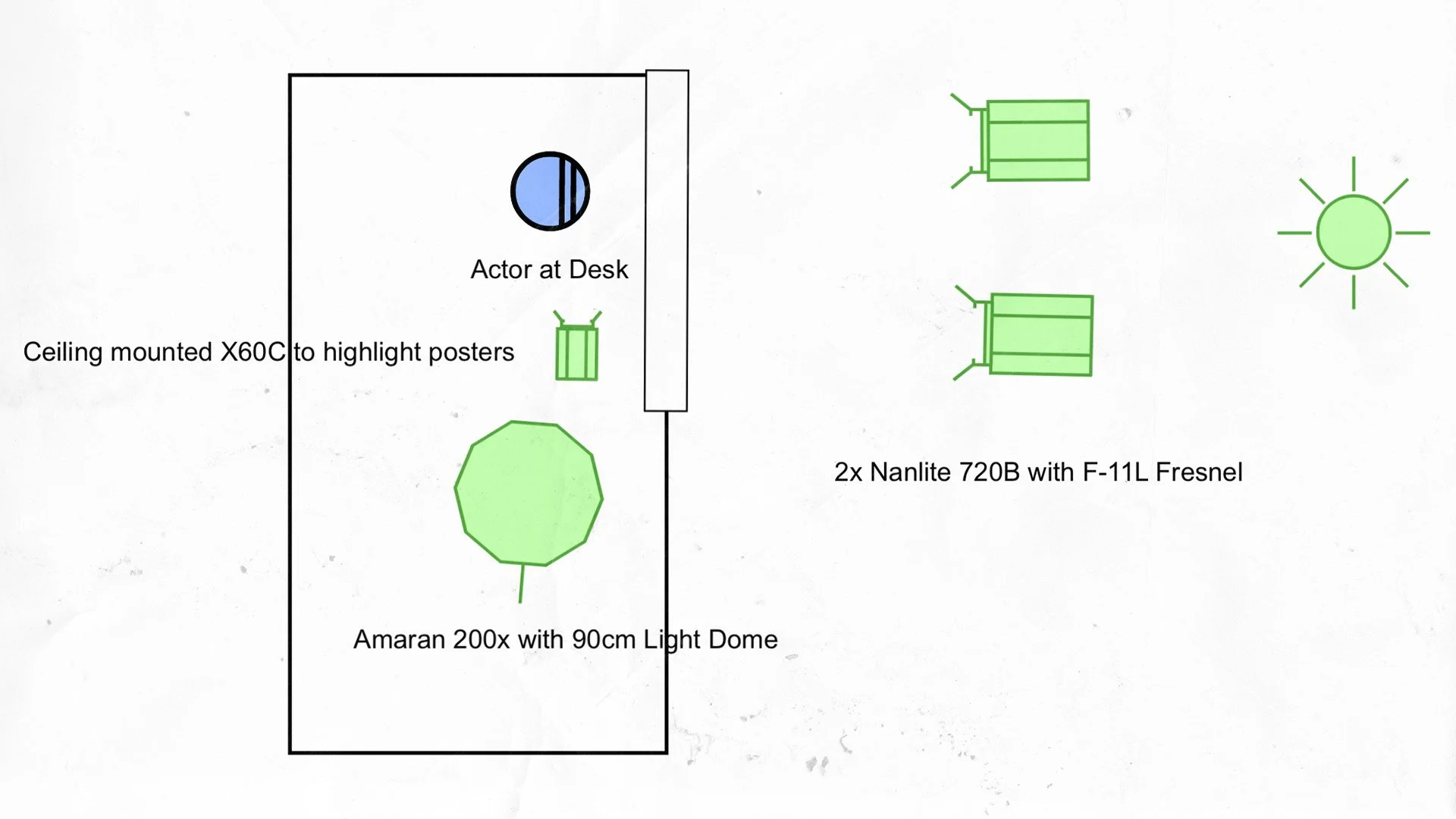 Two lights were used in the office. An Amaran 200x with a softbox pointed and shifted around our talent throughout the film, with a 100d pointed straight up into the ceiling to add a bit more fill to the space. Nothing crazy, we just maintained shooting position to be on the shadow-side for any closeups. Furthermore, the rest of the lighting in this sequence was done practically, with the fluorescent tubes in the ceiling of the office space.