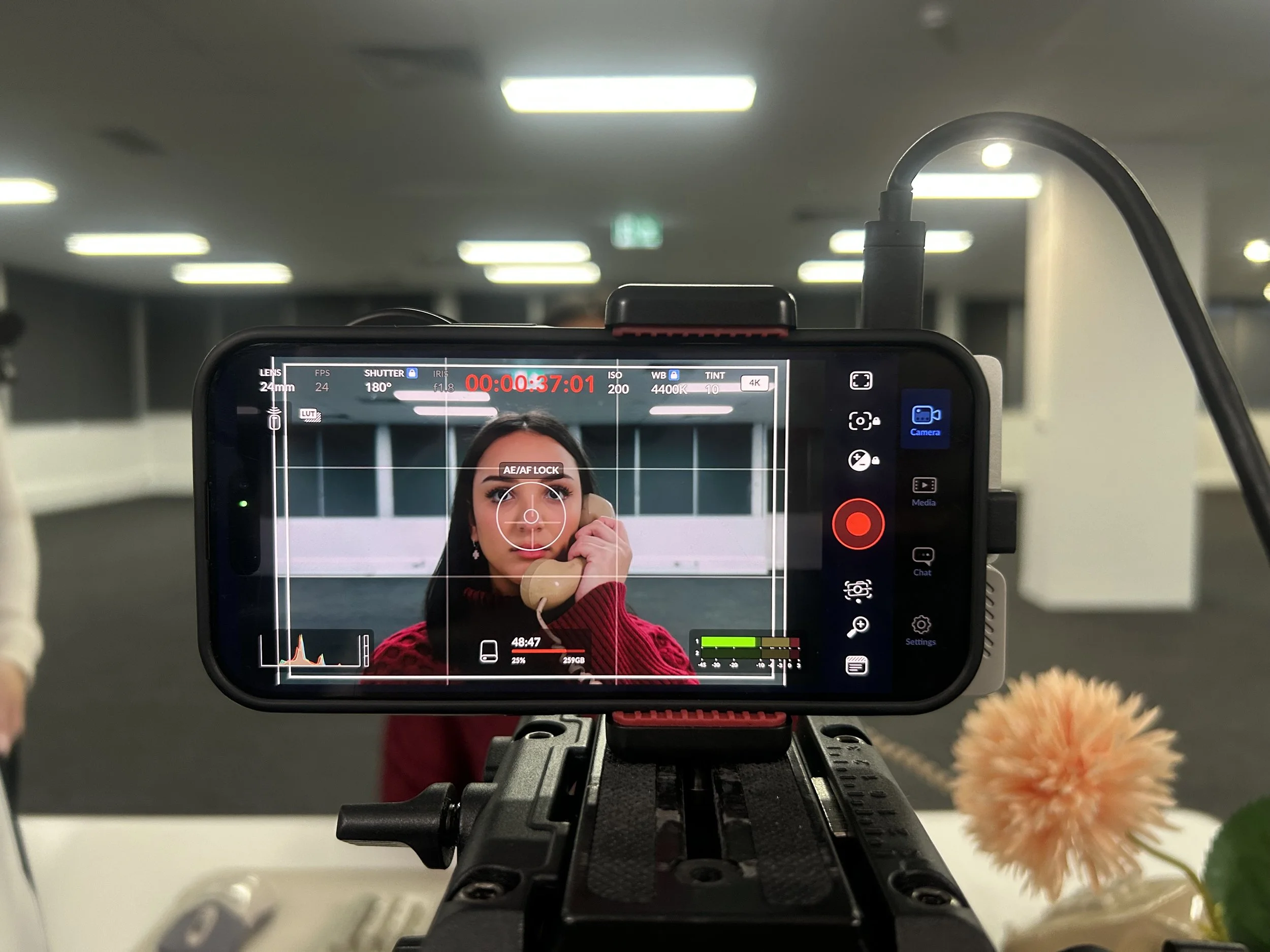 The Blackmagic Camera App being utilised on my iPhone 16 Pro.