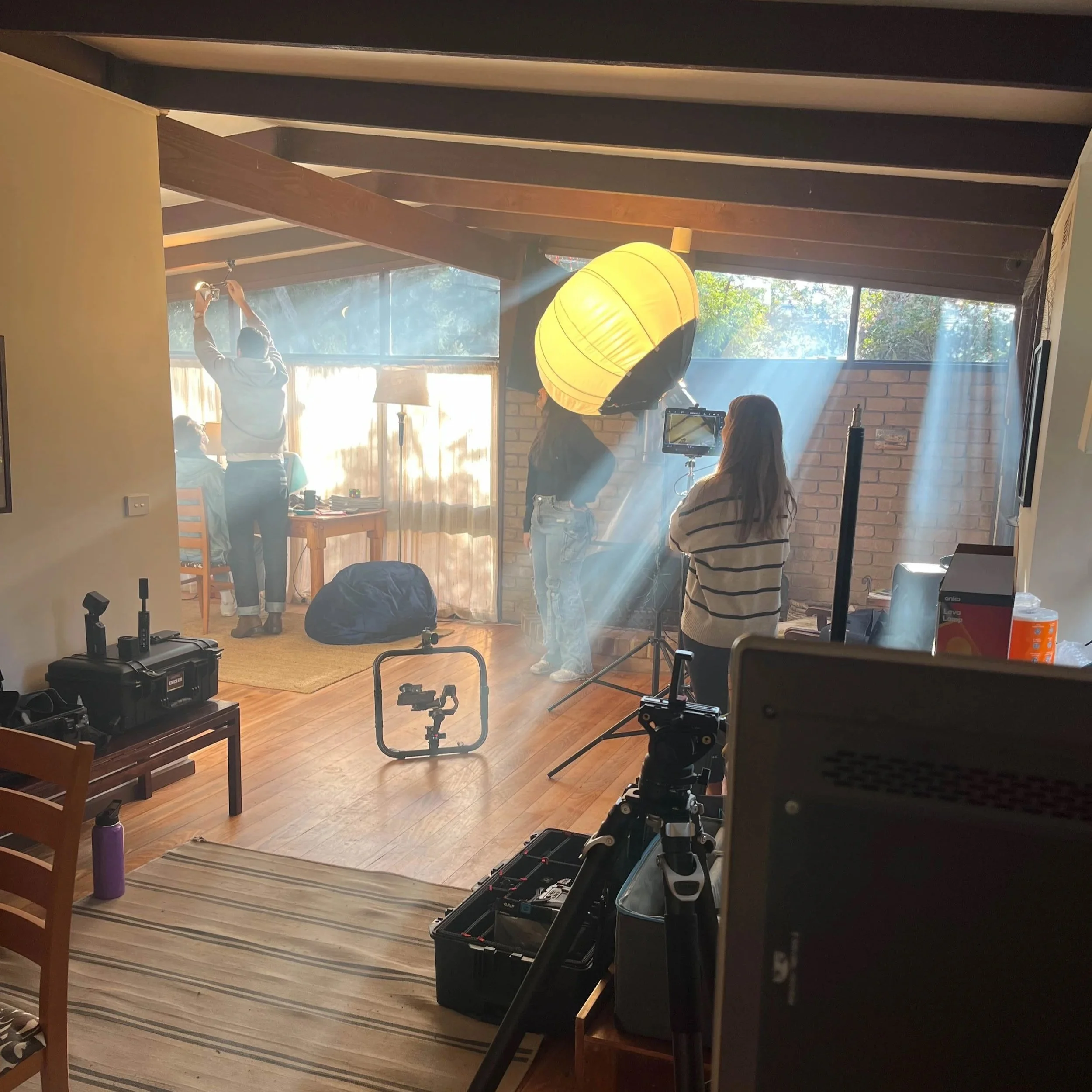 Travelling to each of these locations with such minimal filmmaking gear was incredibly easy. Rather than having to haul massive cinema cameras and my usual commercial setup, having my phone in a small bag nearby in the forest, whilst focusing our attention on bringing over the larger prop items, made the not so glamorous filmmaking process a whole lot easier (carrying stuff back and fourth to set). Speaking of said forest, we were able to complete the short sequence in the Tolangi National park in a relatively quick amount of time, just before sunlight faded. It in fact was the first sequence we filmed, meaning the remainder of the short was ultimately based around that initial shoot. Given our camera setup was so light-weight it was easy to put it up on a light stand, attach it to a magic arm and send it up high.